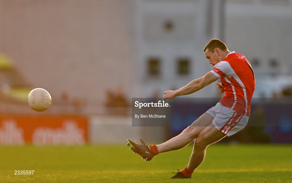 17 September 2022; Con O'Callaghan of Cuala kicks a free during the Dublin County Senior Club Football Championship Quarter-Final match between Kilmacud Crokes and Cuala at Parnell Park in Dublin. Photo by Ben McShane/Sportsfile