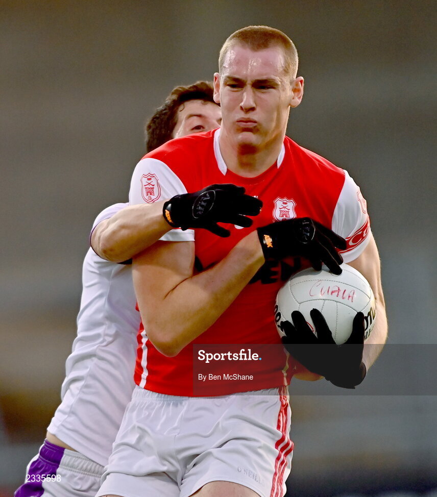 17 September 2022; Peadar Ó Cofaigh Byrne of Cuala in action against Ben Shovlin of Kilmacud Crokes during the Dublin County Senior Club Football Championship Quarter-Final match between Kilmacud Crokes and Cuala at Parnell Park in Dublin. Photo by Ben McShane/Sportsfile