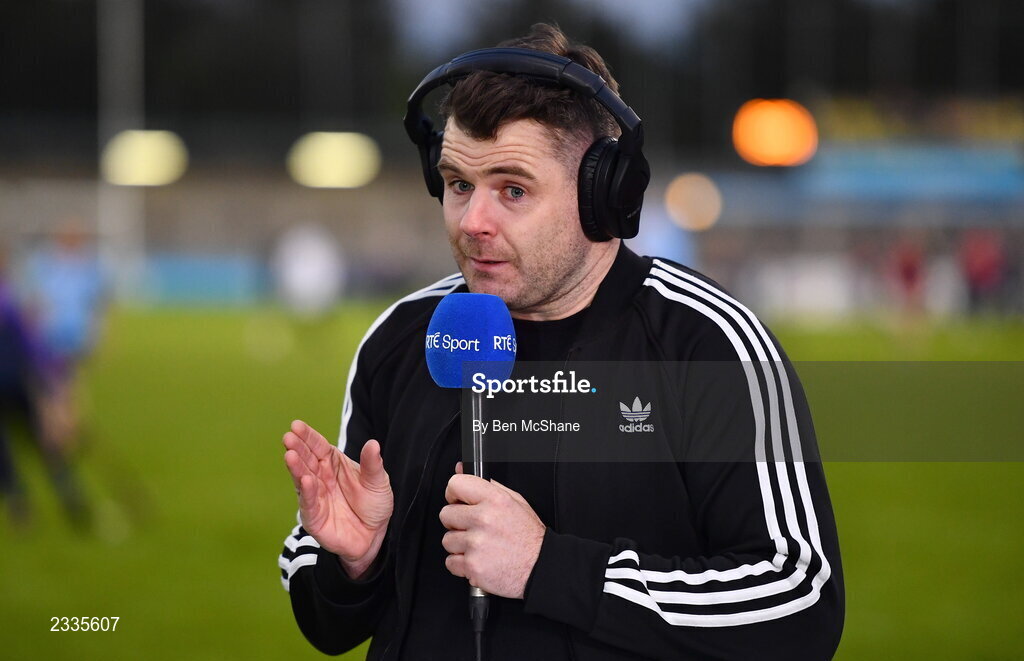 17 September 2022; Former Dublin senior footballer and RTÉ analyst Kevin McManamon at half-time of the Dublin County Senior Club Football Championship Quarter-Final match between Kilmacud Crokes and Cuala at Parnell Park in Dublin. Photo by Ben McShane/Sportsfile