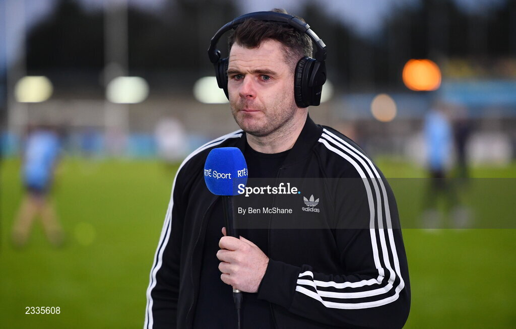17 September 2022; Former Dublin senior footballer and RTÉ analyst Kevin McManamon at half-time of the Dublin County Senior Club Football Championship Quarter-Final match between Kilmacud Crokes and Cuala at Parnell Park in Dublin. Photo by Ben McShane/Sportsfile