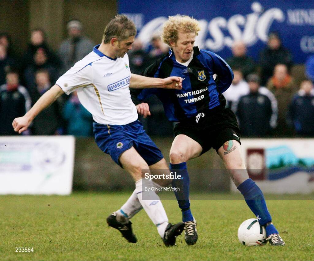 27 January 2007; William Murphy, Linfield, in action against Chris Walker, Armagh City. Carnegie Premier League, Armagh City v Linfield, Holm Park, Armagh. Picture Credit: Oliver McVeigh / SPORTSFILE