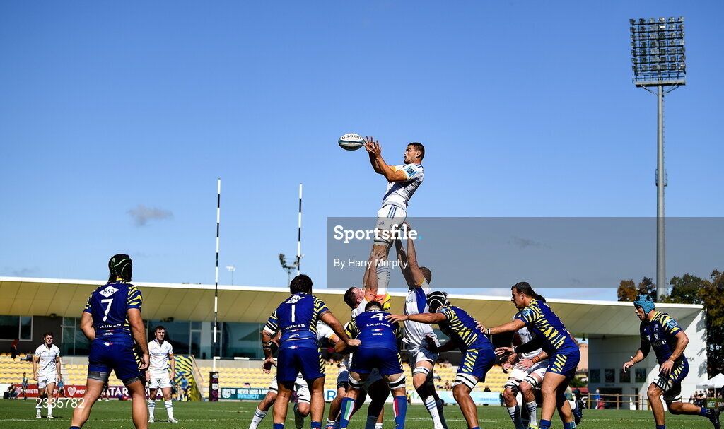 17 September 2022; Max Deegan of Leinster takes possession in a lineout ahead of / during the United Rugby Championship match between Zebre Parma and Leinster at Stadio Sergio Lanfranchi in Parma, Italy. Photo by Harry Murphy/Sportsfile