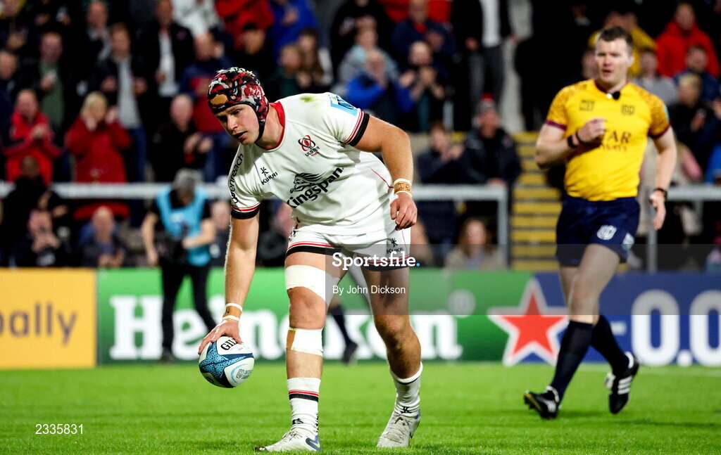 17 September 2022; Luke Marshall of Ulster scores his side's first try during the United Rugby Championship match between Ulster and Connacht at Kingspan Stadium in Belfast. Photo by John Dickson/Sportsfile