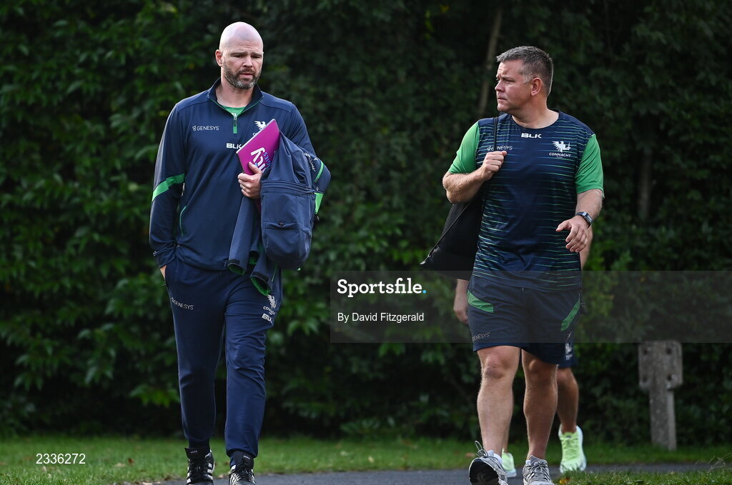 17 September 2022; Connacht head coach Peter Wilkins, left, and scrum and contact coach Colm Tucker before the United Rugby Championship match between Ulster and Connacht at Kingspan Stadium in Belfast. Photo by David Fitzgerald/Sportsfile