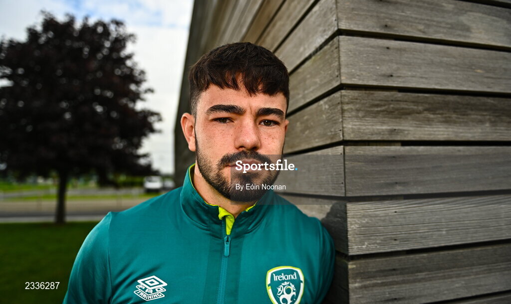 19 September 2022; Eiran Cashin stands for a portrait during a Republic of Ireland U21's press conference at FAI National Training Centre in Abbotstown, Dublin. Photo by Eóin Noonan/Sportsfile