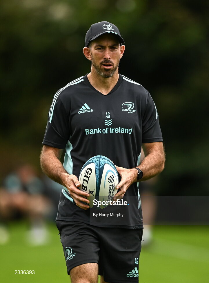 19 September 2022; Backs coach Andrew Goodman during a Leinster Rugby squad training session at UCD in Dublin. Photo by Harry Murphy/Sportsfile