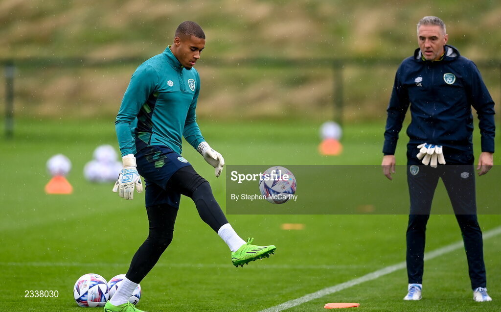 22 September 2022; Goalkeeper Gavin Bazunu during a Republic of Ireland training session at the FAI National Training Centre in Abbotstown, Dublin. Photo by Stephen McCarthy/Sportsfile