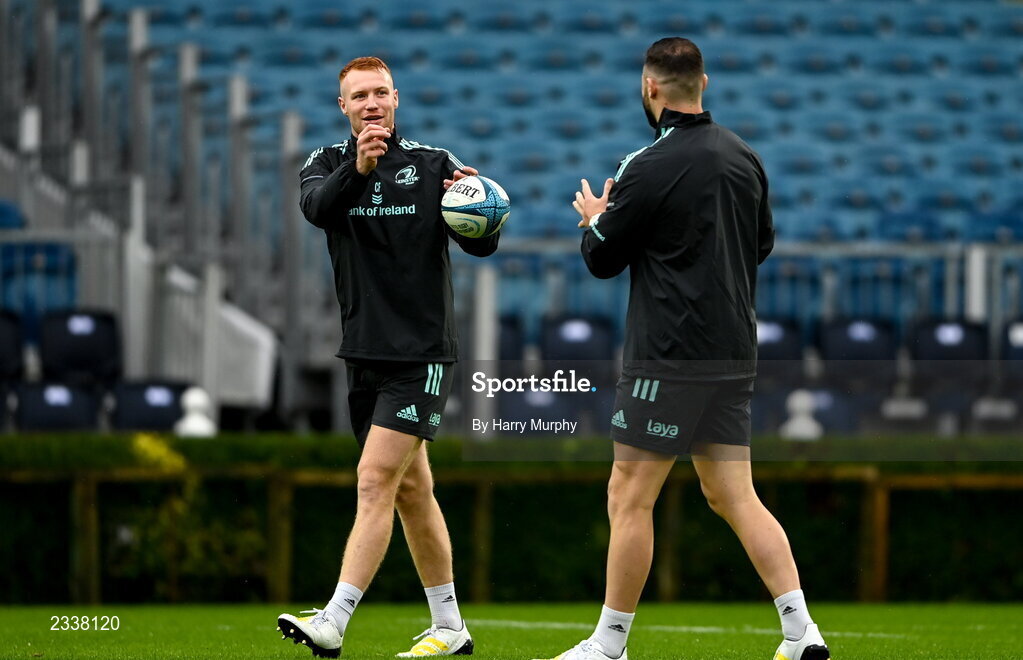 22 September 2022; Ciarán Frawley and Robbie Henshaw during Leinster rugby Captain's Run at RDS Arena in Dublin. Photo by Harry Murphy/Sportsfile