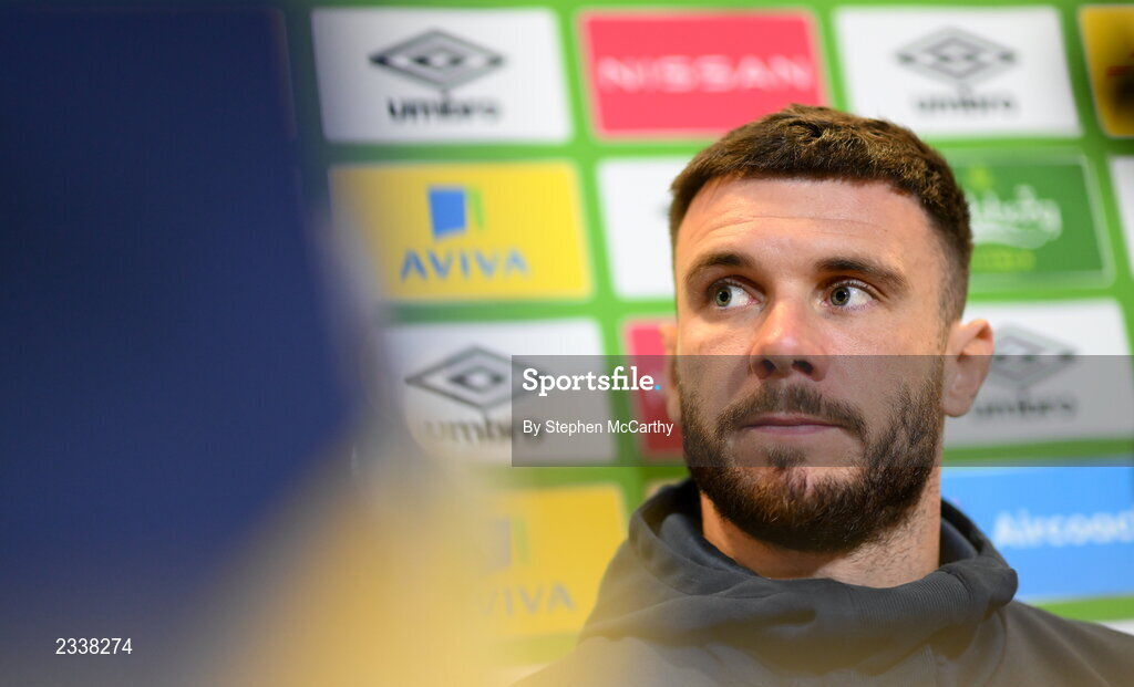 22 September 2022; Scott Hogan during a Republic of Ireland press conference at the FAI Headquarters in Abbotstown, Dublin. Photo by Stephen McCarthy/Sportsfile