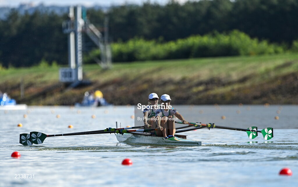 22 September 2022; Aoife Casey, left, and Margaret Cremen of Ireland compete in the Lightweight Women's Double Sculls semi-final A/B 1 during day 5 of the World Rowing Championships 2022 at Racice in Czech Republic. Photo by Piaras Ó Mídheach/Sportsfile