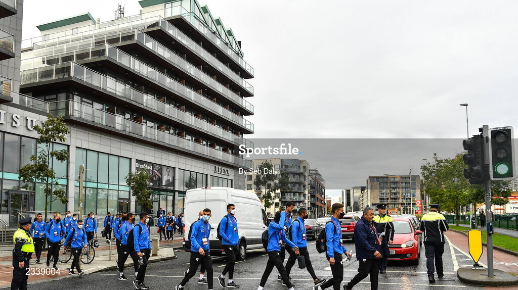 23 September 2022; The Israel team make their way to the stadium before the UEFA European U21 Championship play-off first leg match between Republic of Ireland and Israel at Tallaght Stadium in Dublin. Photo by Seb Daly/Sportsfile