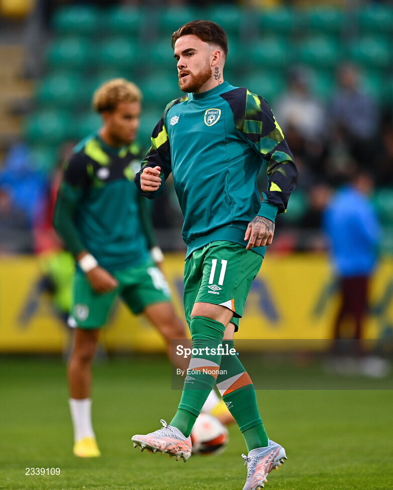 23 September 2022; Aaron Connolly of Republic of Ireland before the UEFA European U21 Championship play-off first leg match between Republic of Ireland and Israel at Tallaght Stadium in Dublin. Photo by Eóin Noonan/Sportsfile