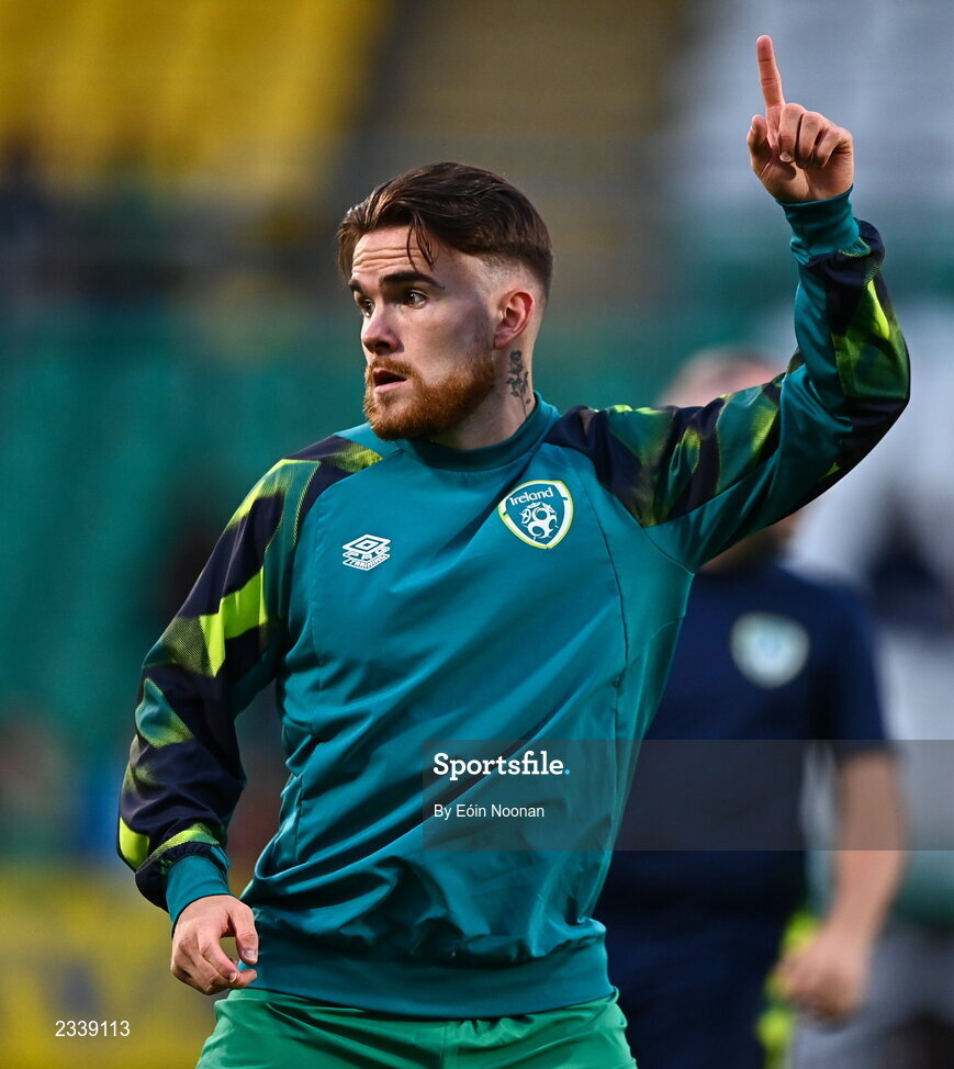 23 September 2022; Aaron Connolly of Republic of Ireland before the UEFA European U21 Championship play-off first leg match between Republic of Ireland and Israel at Tallaght Stadium in Dublin. Photo by Eóin Noonan/Sportsfile
