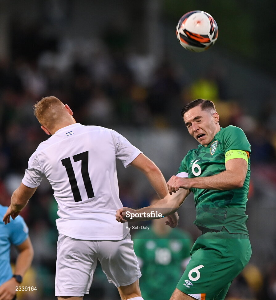 23 September 2022; Conor Coventry of Republic of Ireland and Ido Shahar of Israel during the UEFA European U21 Championship play-off first leg match between Republic of Ireland and Israel at Tallaght Stadium in Dublin. Photo by Seb Daly/Sportsfile