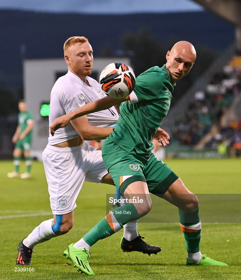 23 September 2022; Will Smallbone of Republic of Ireland in action against Ido Shahar of Israel during the UEFA European U21 Championship play-off first leg match between Republic of Ireland and Israel at Tallaght Stadium in Dublin. Photo by Seb Daly/Sportsfile