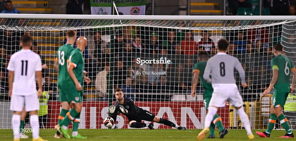 23 September 2022; Republic of Ireland goalkeeper Brian Maher saves a shot at goal during the UEFA European U21 Championship play-off first leg match between Republic of Ireland and Israel at Tallaght Stadium in Dublin. Photo by Eóin Noonan/Sportsfile