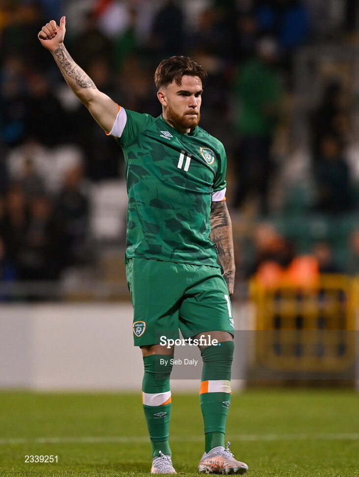 23 September 2022; Aaron Connolly of Republic of Ireland during the UEFA European U21 Championship play-off first leg match between Republic of Ireland and Israel at Tallaght Stadium in Dublin. Photo by Seb Daly/Sportsfile