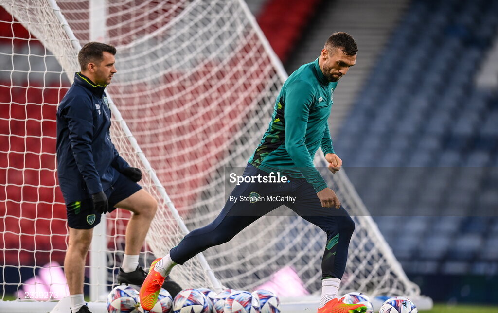 23 September 2022; Shane Duffy during a Republic of Ireland training session at Hampden Park in Glasgow, Scotland. Photo by Stephen McCarthy/Sportsfile
