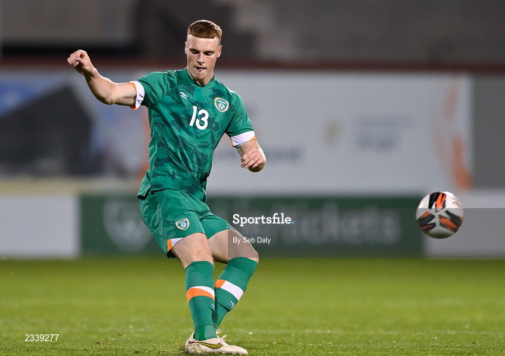 23 September 2022; Jake O'Brien of Republic of Ireland during the UEFA European U21 Championship play-off first leg match between Republic of Ireland and Israel at Tallaght Stadium in Dublin. Photo by Seb Daly/Sportsfile