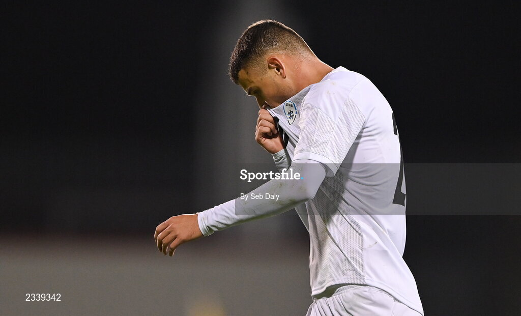 23 September 2022; Stav Lemkin of Israel after being sent off during the UEFA European U21 Championship play-off first leg match between Republic of Ireland and Israel at Tallaght Stadium in Dublin. Photo by Seb Daly/Sportsfile