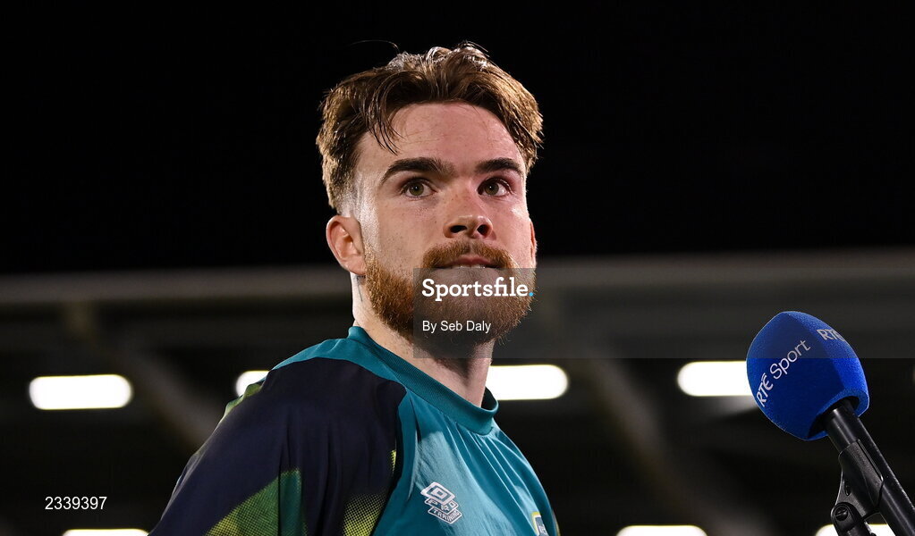 23 September 2022; Aaron Connolly of Republic of Ireland is interviewed by RTE Sport after the UEFA European U21 Championship play-off first leg match between Republic of Ireland and Israel at Tallaght Stadium in Dublin. Photo by Seb Daly/Sportsfile
