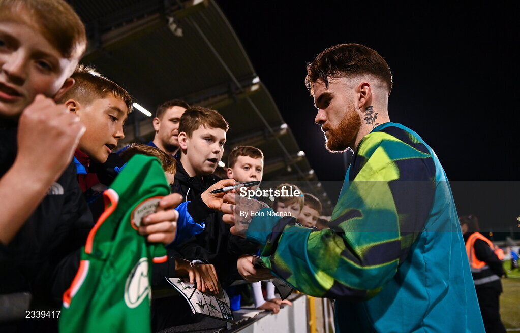 23 September 2022; Aaron Connolly of Republic of Ireland with supporters after the UEFA European U21 Championship play-off first leg match between Republic of Ireland and Israel at Tallaght Stadium in Dublin. Photo by Eoin Noonan/Sportsfile