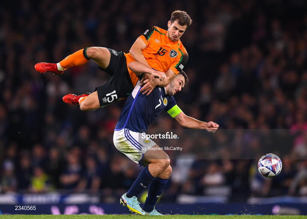 24 September 2022; Jayson Molumby of Republic of Ireland in action against John McGinn of Scotland during UEFA Nations League B Group 1 match between Scotland and Republic of Ireland at Hampden Park in Glasgow, Scotland. Photo by Stephen McCarthy/Sportsfile
