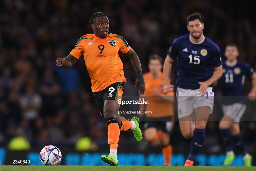 24 September 2022; Michael Obafemi of Republic of Ireland during UEFA Nations League B Group 1 match between Scotland and Republic of Ireland at Hampden Park in Glasgow, Scotland. Photo by Stephen McCarthy/Sportsfile