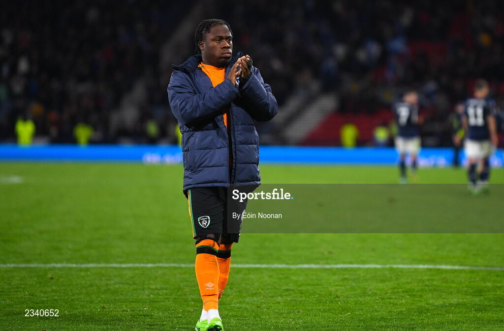24 September 2022; Michael Obafemi of Republic of Ireland after UEFA Nations League B Group 1 match between Scotland and Republic of Ireland at Hampden Park in Glasgow, Scotland. Photo by Eóin Noonan/Sportsfile