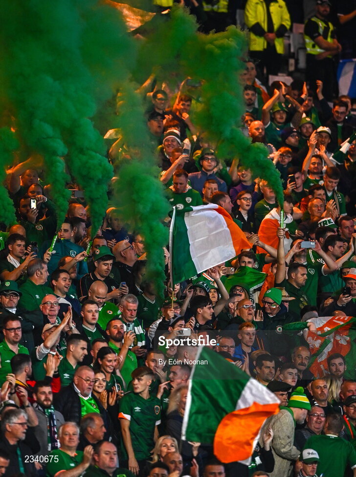 24 September 2022; Republic of Ireland supporters during UEFA Nations League B Group 1 match between Scotland and Republic of Ireland at Hampden Park in Glasgow, Scotland. Photo by Eóin Noonan/Sportsfile
