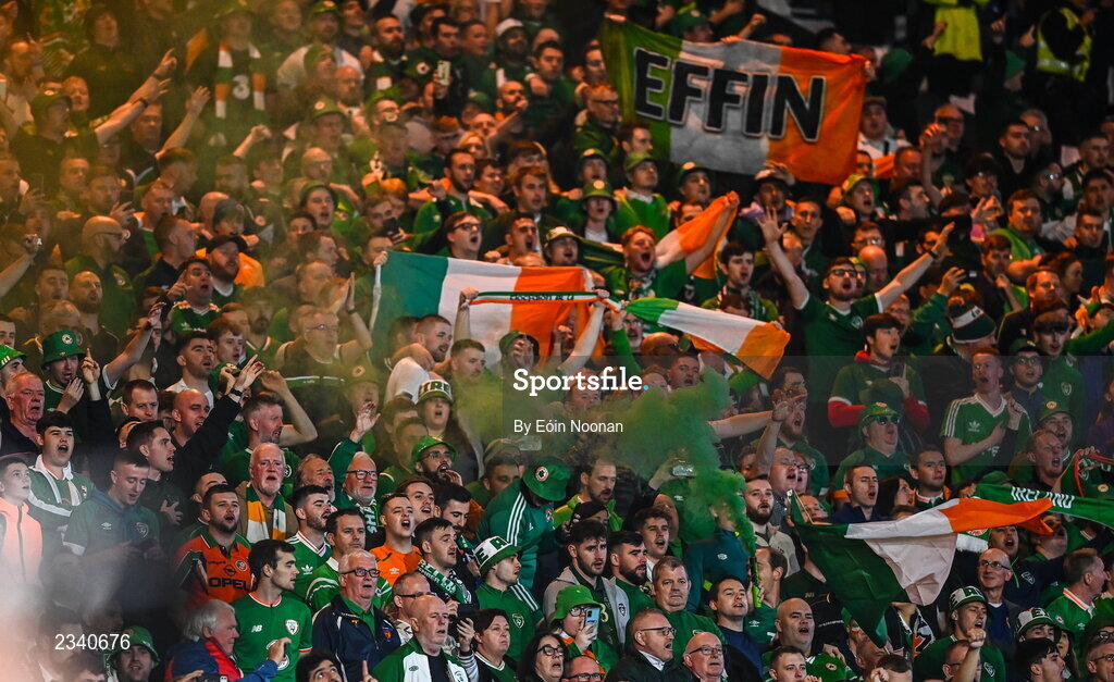 24 September 2022; Republic of Ireland supporters during UEFA Nations League B Group 1 match between Scotland and Republic of Ireland at Hampden Park in Glasgow, Scotland. Photo by Eóin Noonan/Sportsfile