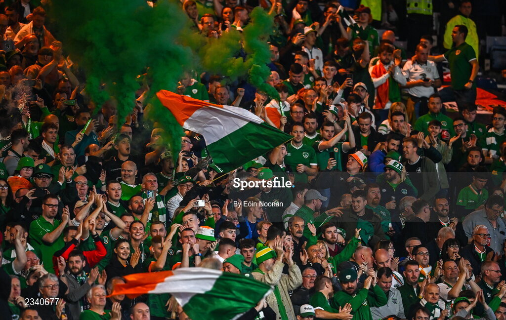 24 September 2022; Republic of Ireland supporters during UEFA Nations League B Group 1 match between Scotland and Republic of Ireland at Hampden Park in Glasgow, Scotland. Photo by Eóin Noonan/Sportsfile