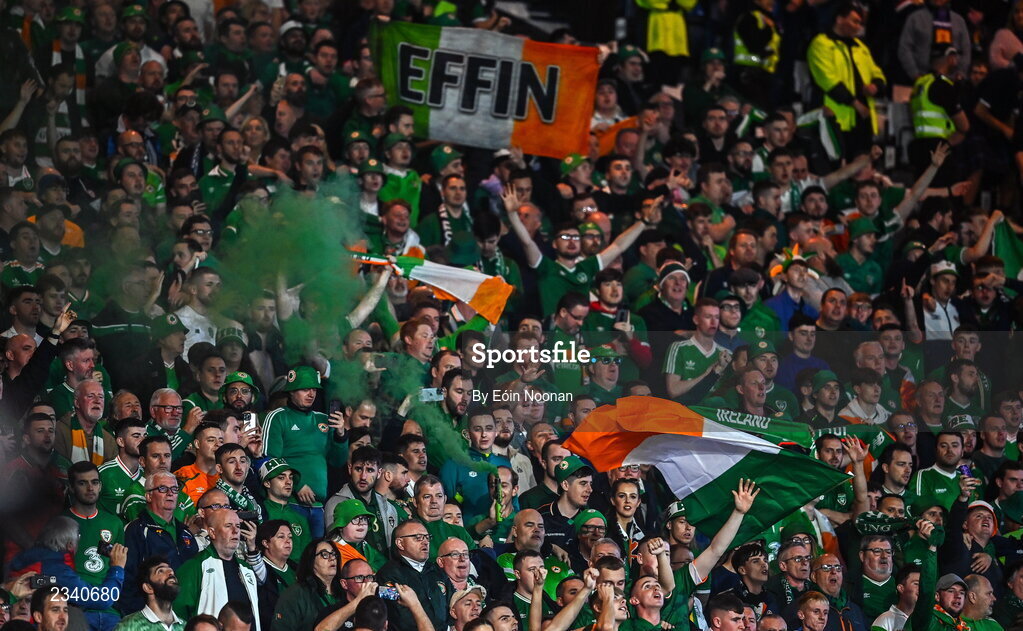 24 September 2022; Republic of Ireland supporters during UEFA Nations League B Group 1 match between Scotland and Republic of Ireland at Hampden Park in Glasgow, Scotland. Photo by Eóin Noonan/Sportsfile