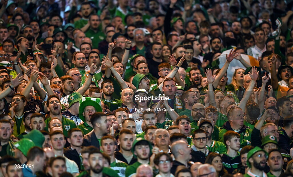 24 September 2022; Republic of Ireland supporters during UEFA Nations League B Group 1 match between Scotland and Republic of Ireland at Hampden Park in Glasgow, Scotland. Photo by Stephen McCarthy/Sportsfile
