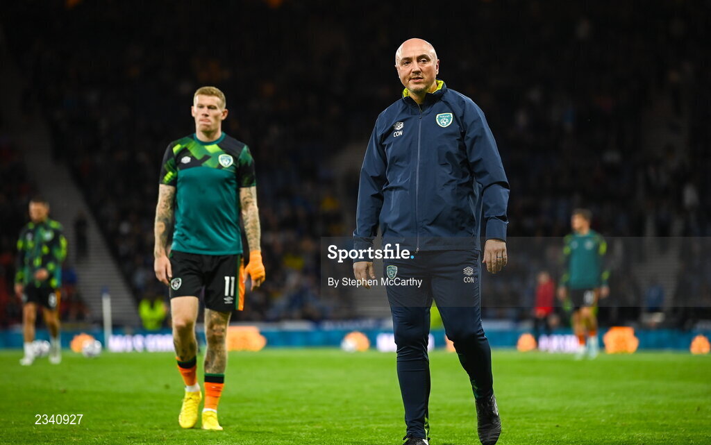 24 September 2022; Republic of Ireland athletic therapist Colum O’Neill during UEFA Nations League B Group 1 match between Scotland and Republic of Ireland at Hampden Park in Glasgow, Scotland. Photo by Stephen McCarthy/Sportsfile