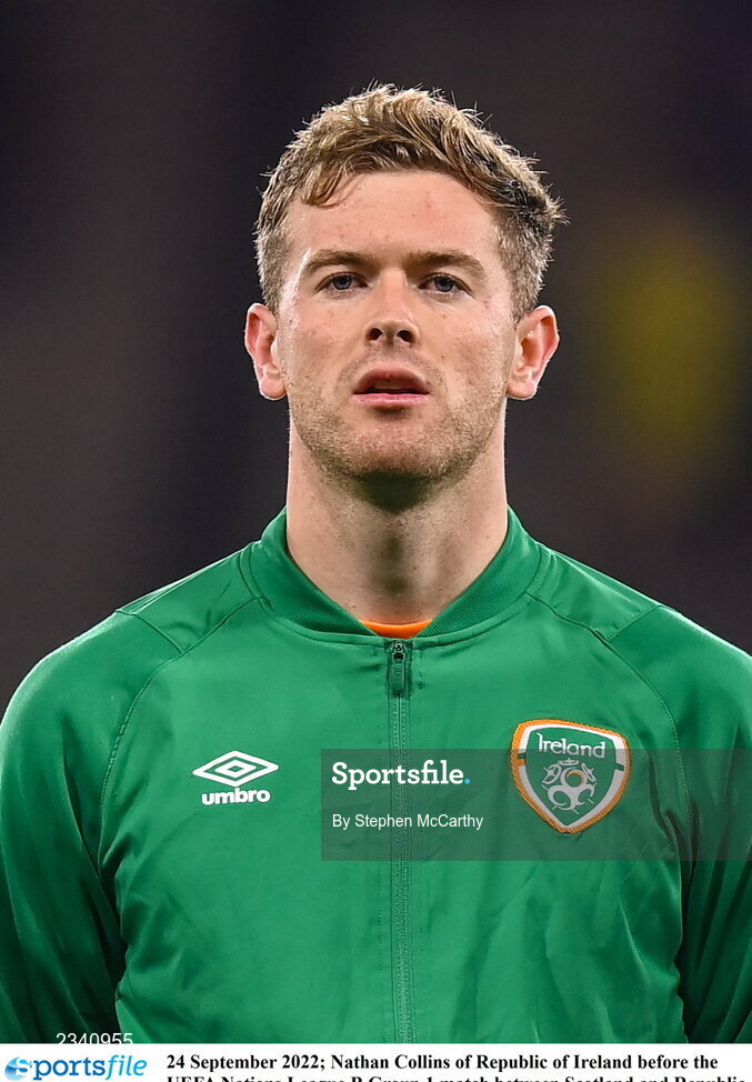 24 September 2022; Nathan Collins of Republic of Ireland before the UEFA Nations League B Group 1 match between Scotland and Republic of Ireland at Hampden Park in Glasgow, Scotland. Photo by Stephen McCarthy/Sportsfile