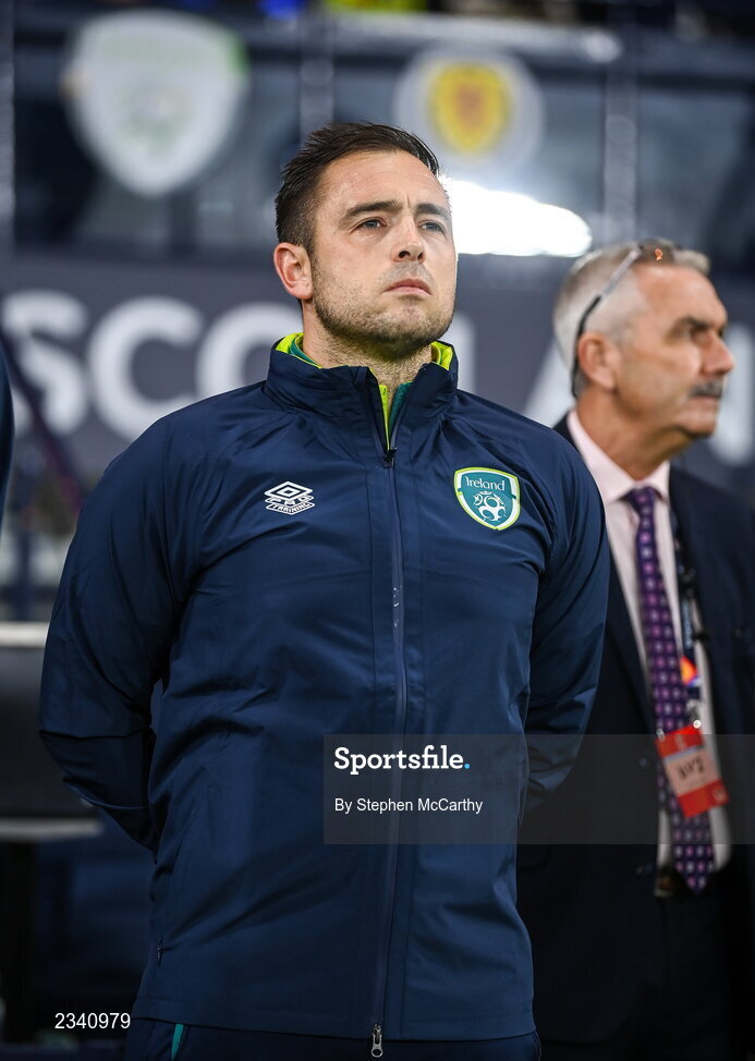 24 September 2022; Republic of Ireland coach Stephen Rice before the UEFA Nations League B Group 1 match between Scotland and Republic of Ireland at Hampden Park in Glasgow, Scotland. Photo by Stephen McCarthy/Sportsfile