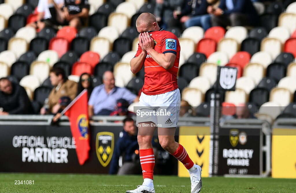 25 September 2022; Keith Earls of Munster leaves the field during the United Rugby Championship match between Dragons and Munster at Rodney Parade in Newport, Wales. Photo by Ben Evans/Sportsfile