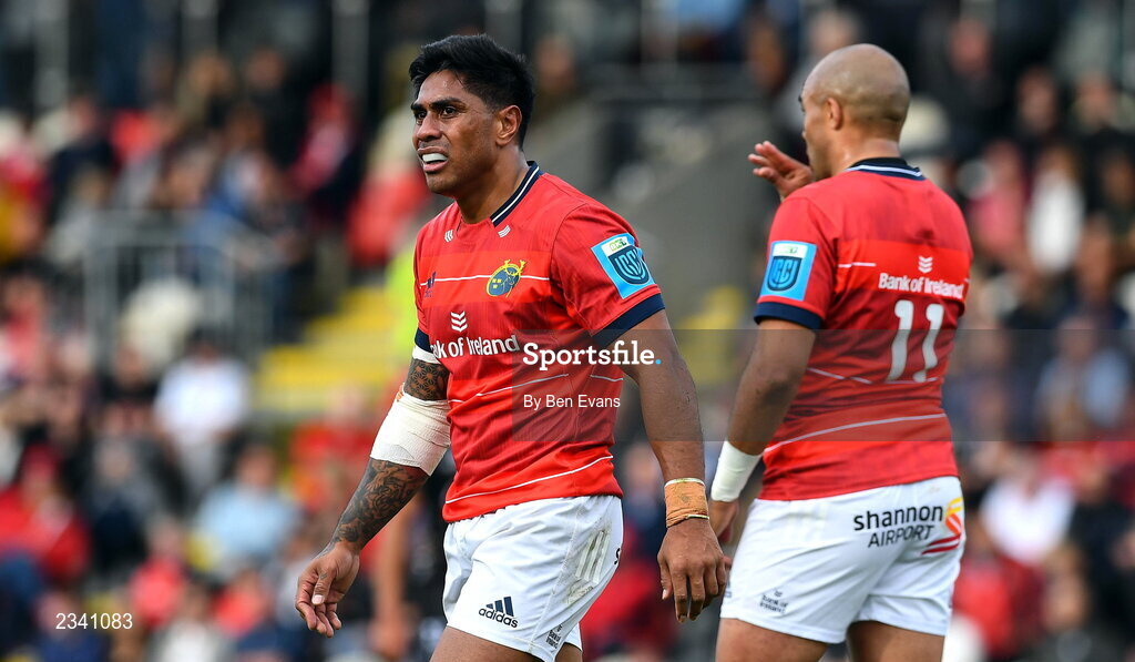 25 September 2022; Malakai Fekitoa of Munster during the United Rugby Championship match between Dragons and Munster at Rodney Parade in Newport, Wales. Photo by Ben Evans/Sportsfile