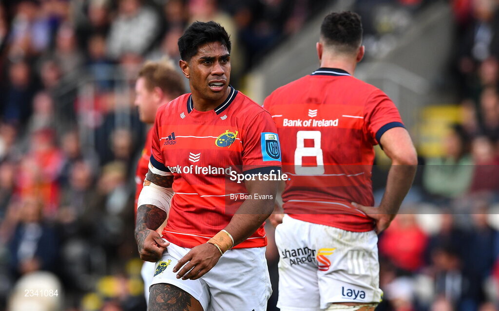 25 September 2022; Malakai Fekitoa of Munster during the United Rugby Championship match between Dragons and Munster at Rodney Parade in Newport, Wales. Photo by Ben Evans/Sportsfile