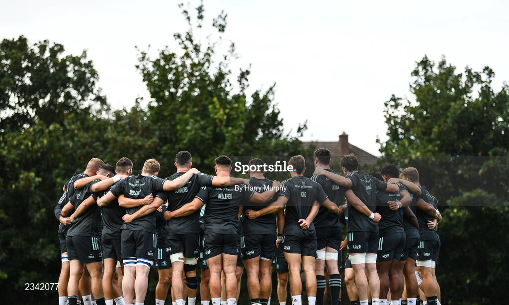 26 September 2022; Leinster players huddle during a Leinster Rugby squad training session at UCD in Dublin. Photo by Harry Murphy/Sportsfile