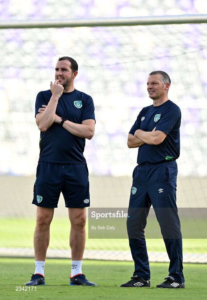 26 September 2022; Manager Jim Crawford, right, with assistant coach John O'Shea during a Republic of Ireland U21 training session at Bloomfield Stadium in Tel Aviv, Israel. Photo by Seb Daly/Sportsfile