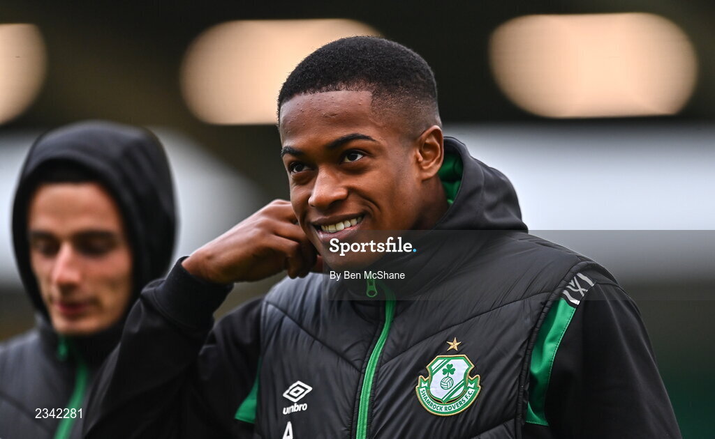 26 September 2022; Aidomo Emakhu of Shamrock Rovers before the SSE Airtricity League Premier Division match between Shamrock Rovers and UCD at Tallaght Stadium in Dublin. Photo by Ben McShane/Sportsfile