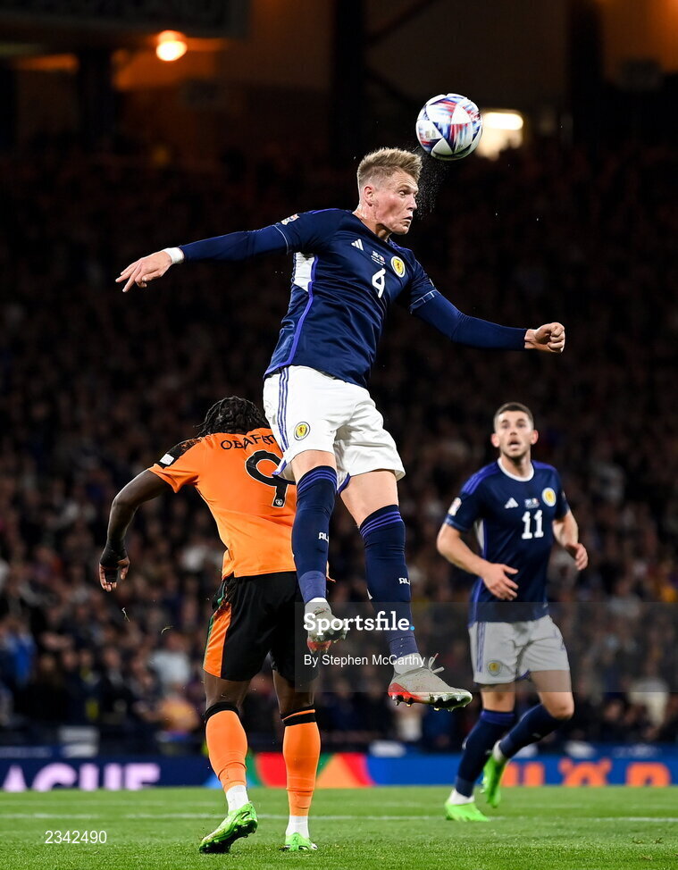 24 September 2022; Scott McTominay of Scotland in action against Michael Obafemi of Republic of Ireland during UEFA Nations League B Group 1 match between Scotland and Republic of Ireland at Hampden Park in Glasgow, Scotland. Photo by Stephen McCarthy/Sportsfile