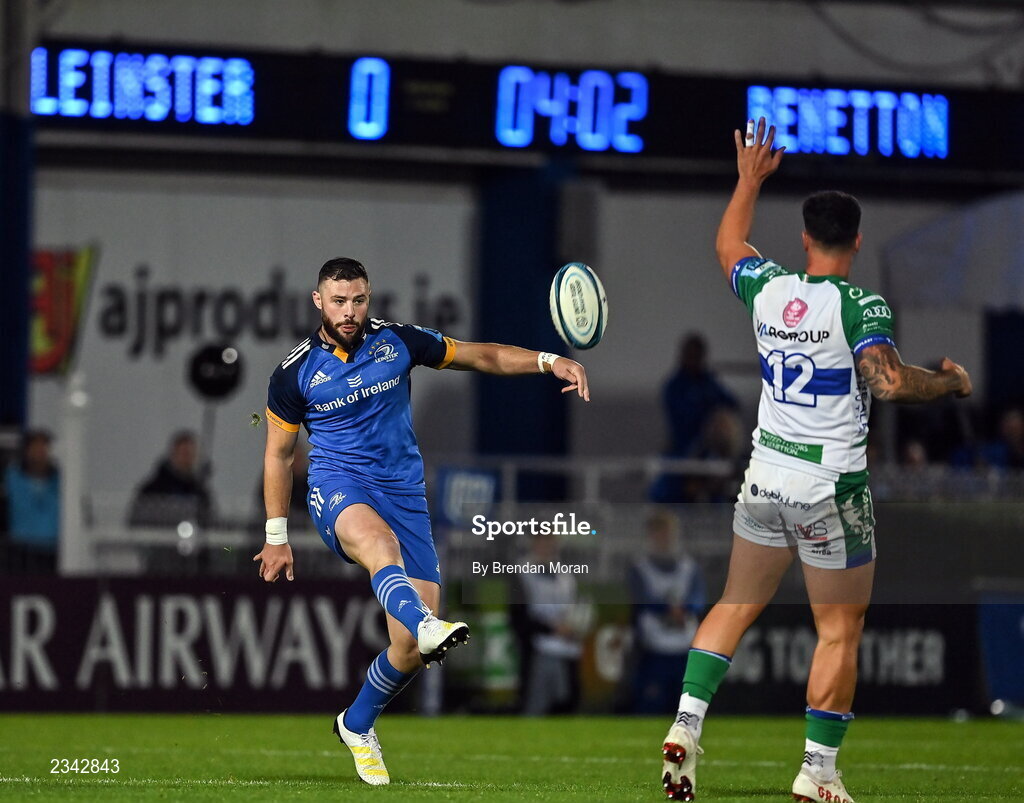 23 September 2022; Robbie Henshaw of Leinster in action against Marco Zanon of Benetton during the United Rugby Championship match between Leinster and Benetton at the RDS Arena in Dublin. Photo by Brendan Moran/Sportsfile
