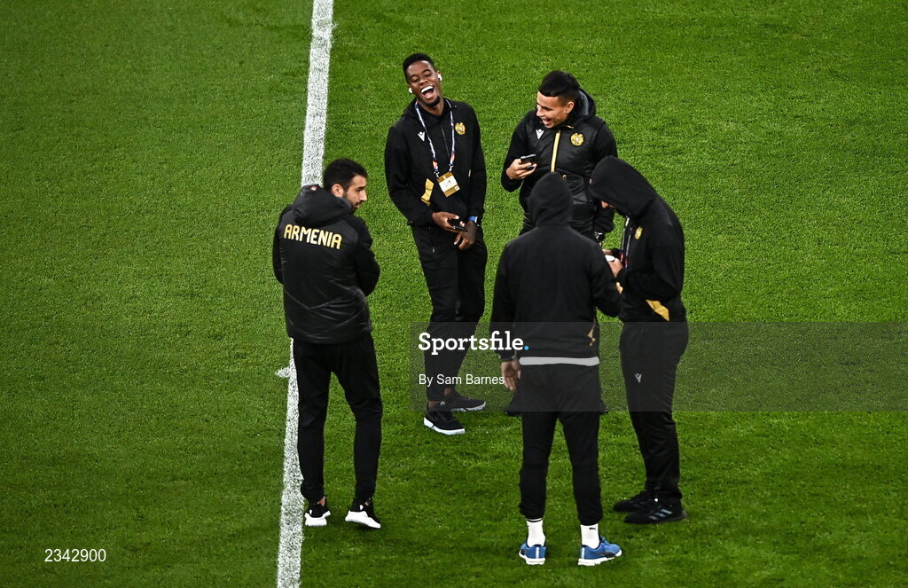 27 September 2022; Armenia players before the UEFA Nations League B Group 1 match between Republic of Ireland and Armenia at Aviva Stadium in Dublin. Photo by Sam Barnes/Sportsfile