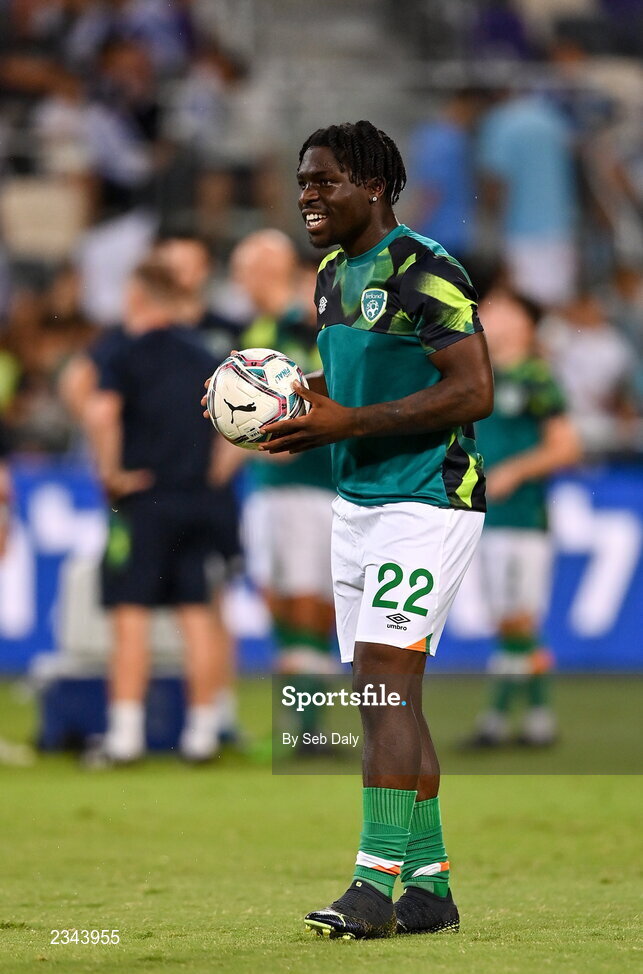27 September 2022; Festy Ebosele of Republic of Ireland before the UEFA European U21 Championship play-off second leg match between Israel and Republic of Ireland at Bloomfield Stadium in Tel Aviv, Israel. Photo by Seb Daly/Sportsfile