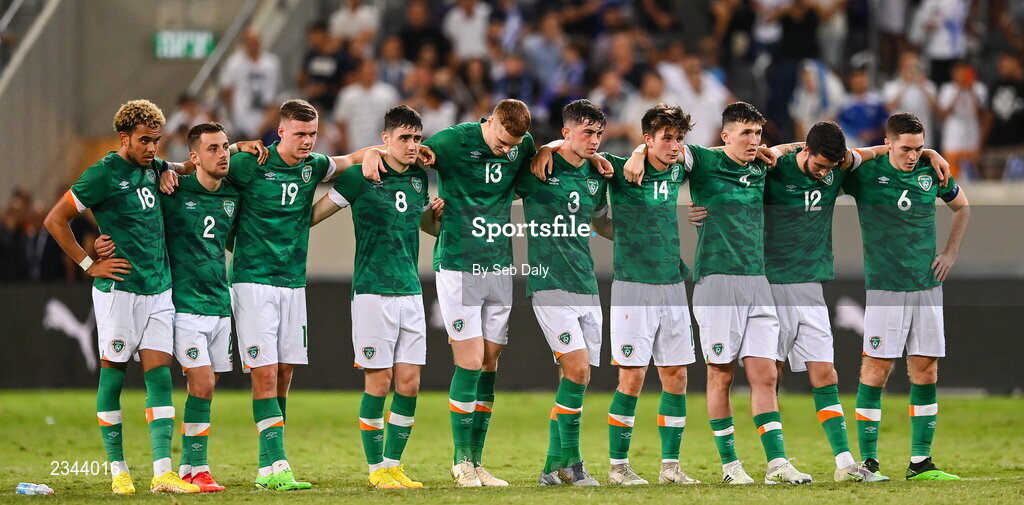 27 September 2022; Republic of Ireland players during the penalty shoot-out of the UEFA European U21 Championship play-off second leg match between Israel and Republic of Ireland at Bloomfield Stadium in Tel Aviv, Israel. Photo by Seb Daly/Sportsfile