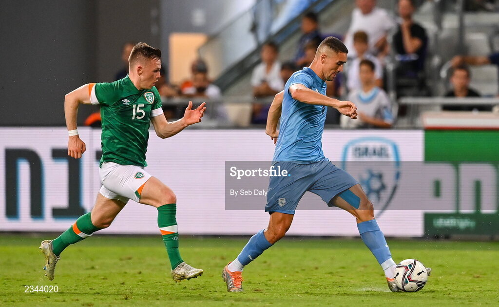 27 September 2022; Roi Herman of Israel in action against Andy Lyons of Republic of Ireland during the UEFA European U21 Championship play-off second leg match between Israel and Republic of Ireland at Bloomfield Stadium in Tel Aviv, Israel. Photo by Seb Daly/Sportsfile