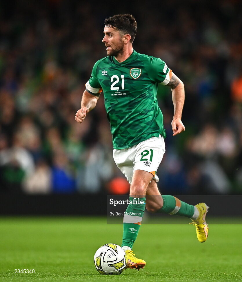 27 September 2022; Robbie Brady of Republic of Ireland during the UEFA Nations League B Group 1 match between Republic of Ireland and Armenia at Aviva Stadium in Dublin. Photo by Ben McShane/Sportsfile